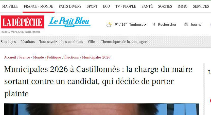 Je viens de prendre connaissance du message de M. Pierre Sicaud posté le mercredi 18 mars en tant que Maire de Castillonnès.